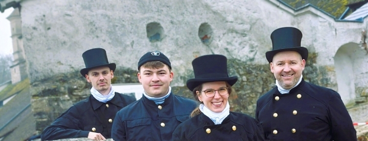 v.l.: Florian Peter (Kaminkehrergeselle), Felix Hoh (Auszubildender), Mona Hutter (Meistergesellin, Energieberaterin, Fachkraft für Rauchwarnmelder), Betriebsinhaber Andreas Strobl (Kaminkehrermeister, Energieberater, Fachkraft für Rauchwarnmelder)